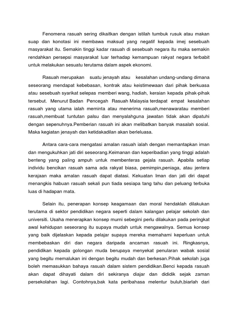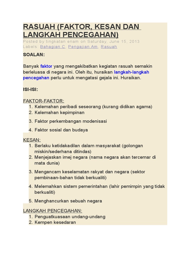 Rasuah Faktor Kesan Dan Langkah Pencegahan Soalan