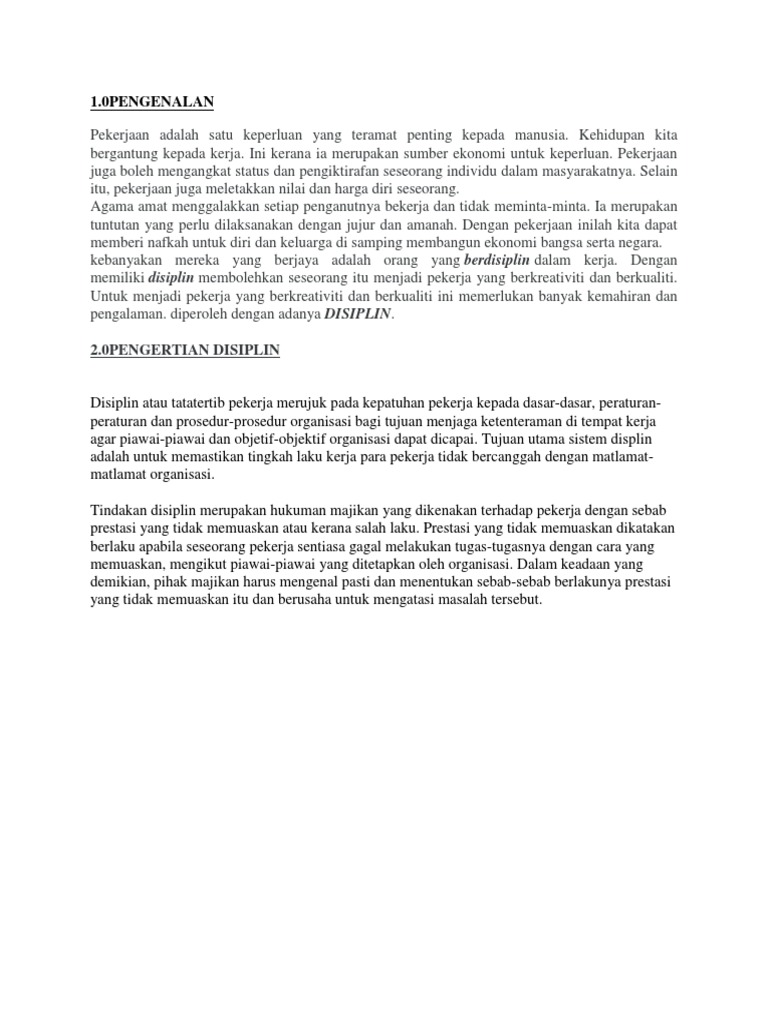 Kesimpulan masalah disiplin pekerjaHasil di atas menunjukkan bahawa terdapat perkaitan yang signifikan pada tahap 0 01 di antara masalah disiplin dengan masalah sendiri dan keluarga di kalangan pegawai dan anggota 10 briged para r 340 203 p 05. Walaubagaimanapun sekitar 80-an apabila ekonomi Singapura semakin berkembang gaji pekerja awam telah dinaikkan bagi memastikan gaji tersebut memuaskan hati pekerja awam dan seterusnya dapat mengatasi masalah rasuah. Masalah yang sering dihadapi oleh organisasi berkaitan dengan kes disiplin pekerja ialah dari segi.