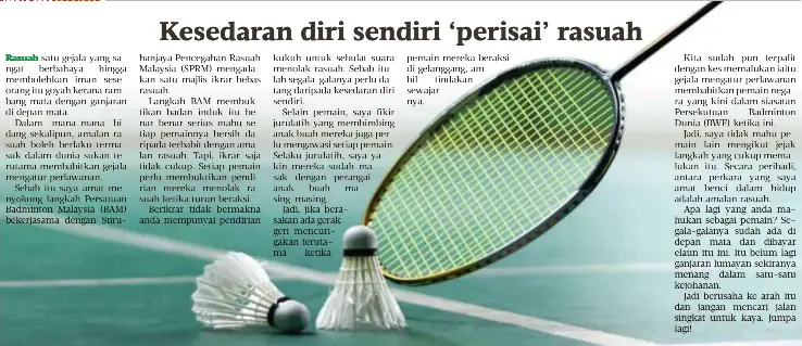 Feb 13 2018 Pemain badminton negara disiasat terbabit rasuah written by MFaizie 13 February 2018 KUALA LUMPUR 13 Feb -Sukan badminton negara digemparkan dengan dakwaan seorang pemain profesional sedang disiasat oleh Persekutuan Badminton Dunia BWF kerana disyaki terbabit dengan skandal mengatur perlawanan. Hilang Karier Kerana Rasuah Persekutuan Badminton Dunia BWF telah memutuskan untuk menggantung 2 pemain Malaysia iatu bekas juara remaja dunia 2011 Zulfadli Zulkiffli dan Tan.